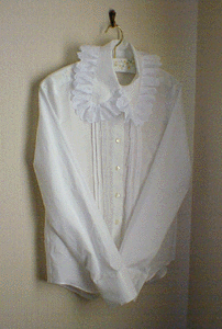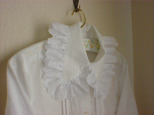衿にたっぷりめにレースを使った他は、タックとピンタックを前身頃に施したのみのシンプルなデザインです。