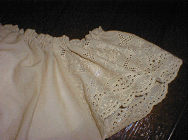 幅広レースの一枚仕立てなので、よく見るとゴージャスなレースでありながら