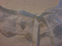 襟元のレースは二種類のレースをつないで幅広レースにいたしました。