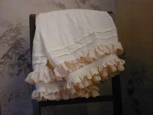 裾には二重にたっぷりと綿レースを使い、