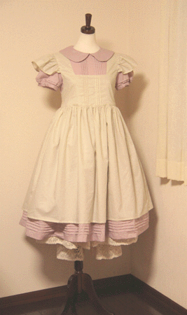ワンピース、タブリエ、ペチコート、ドロワーズがセットになるように作りました。