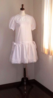 下のスカートは無地ローンで、裾に広幅のフランスレースと
