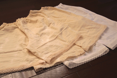 裾にトーションレースをあしらったダブルガーゼのペチパンツです。