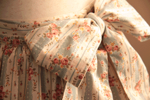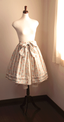 ドビー地にストライプ薔薇プリント(水色)のエプロンタイプのスカートと、