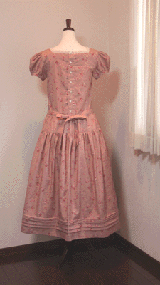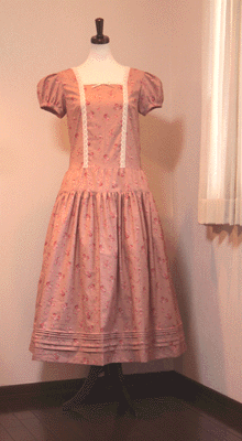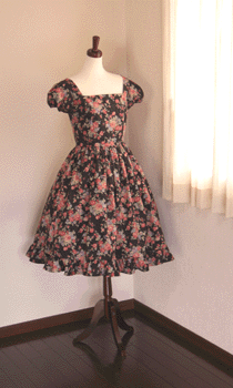 ワンピ10の形で、一点ものの薔薇柄ワンピースを作りました。