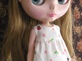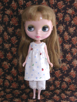 ブラウスは丸襟で、衿、前身頃、袖口にレースがついています。