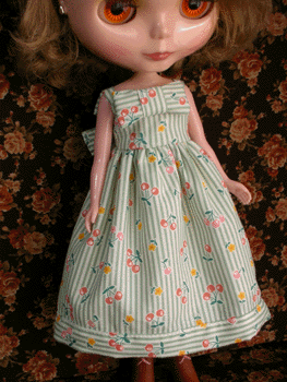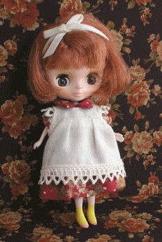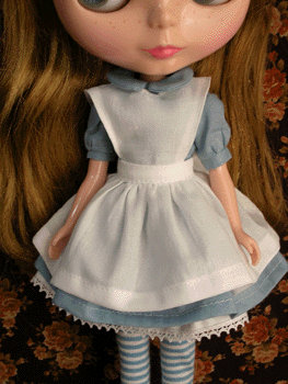 リボンのヘッドドレス、エプロン、半袖パフスリーブワンピース、